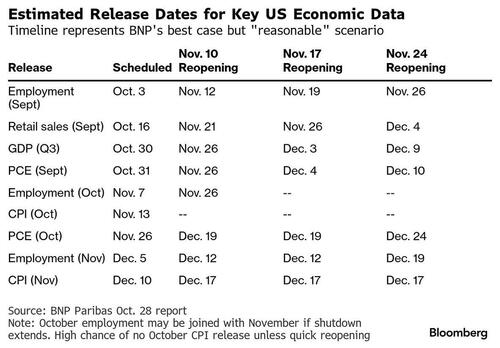 Once the government reopens, markets will face a surge of delayed data releases. Historical precedent from the 2013 shutdown suggests that September’s employment report could be among the first to hit the wires, potentially within three business days of reopening. We expect payrolls to rebound sharply, with headline and private payrolls both forecast at +75k, leaving the unemployment rate steady at 4.3%. So we could get this Thursday or Friday.