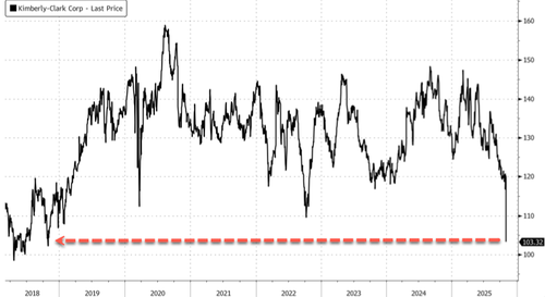 Shares of Kimberly-Clark are at their lowest point since late 2019.