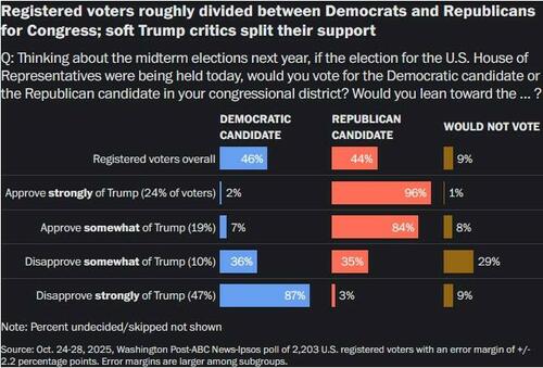 That said, a WaPo poll released Sunday suggests "little evidence that negative impressions of Trump’s performance have accrued to the benefit of the Democratic Party," and there's only a 2-point spread between R's and D's with Democrats leading.