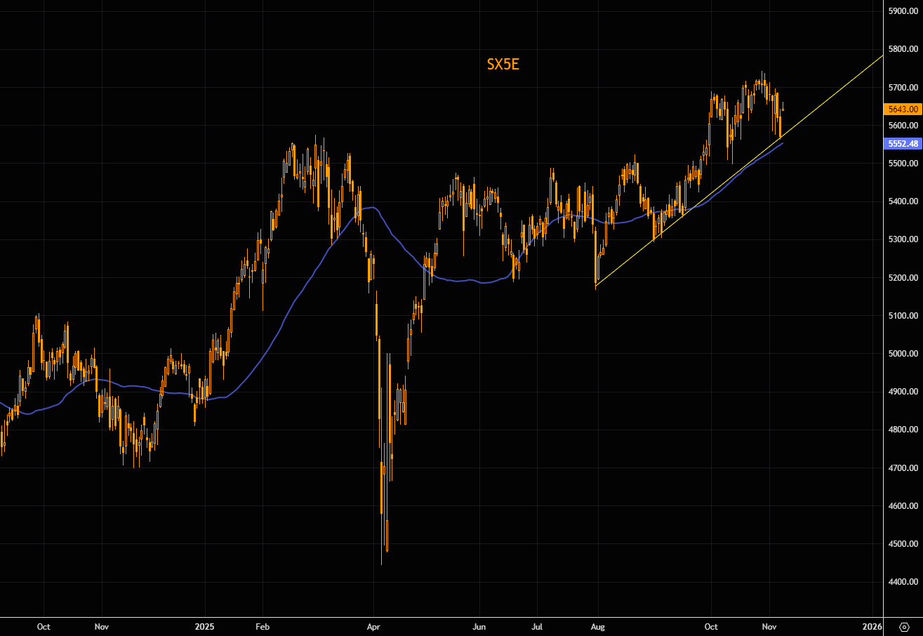 We are again checking in on Europe one of our favourite low volatility macro longs (perhaps we should add "until it isn't" as it is Europe that we are talking about...). Bouncing right on the trend line = good.
